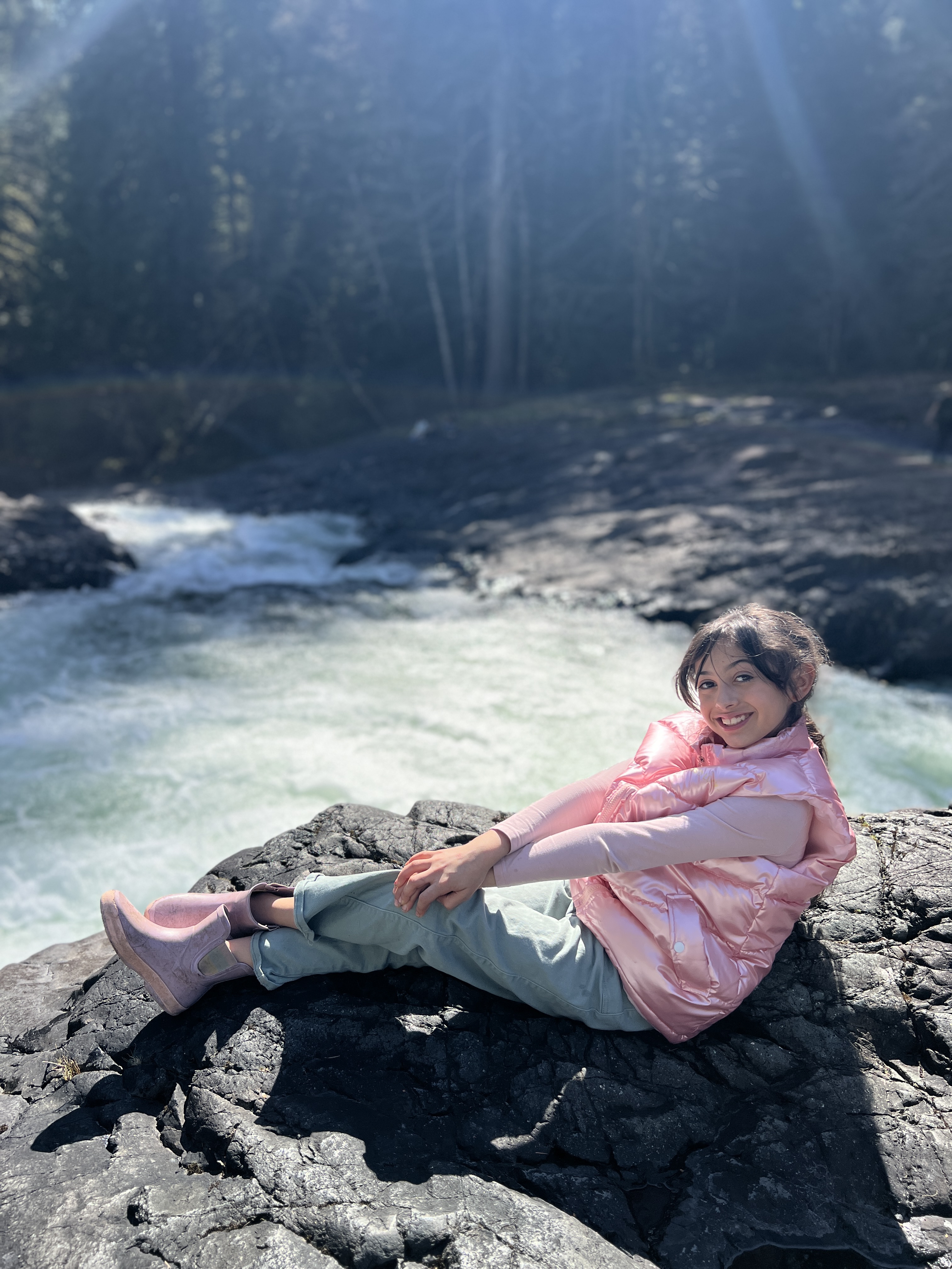 Okay so then I found the PERFECT rock to sit on right by the river and I had to have a little photo shoot. The sun was hitting just right and the water was rushing behind me and I felt like a nature model!!
